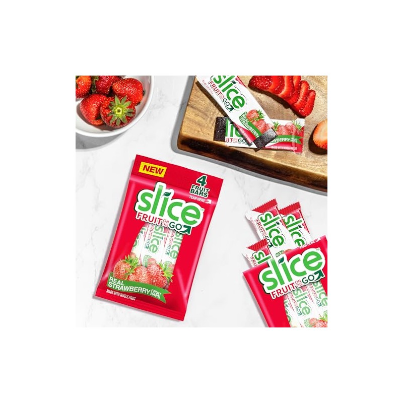 SLICE Fruit Bars, Strawberry, Vegan, Bulk Pack, Gluten-Free, Fat-Free, Natural Flavors & Colors, Perfect On-The-Go Snack, 12 packs of 4 0.35 Ounce Bars (48 Total)