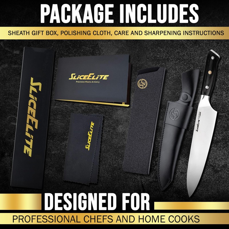 Slice Series 8-Inch Chef Knife – High Carbon German Steel Blade with Ergonomic Pakkawood Handle, Available with Durable Polymer or Premium Leather Sheath Options (Chef Knife with Leather Sheath)