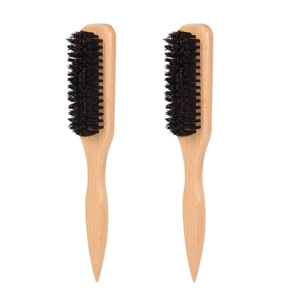 Slick Back Hair Brush, 2-Piece Beechwood Edge Control Brush Set for Smoothing Flyaways & Baby Hairs, Boar Bristle Hair Brush with Tapered Tail for Sectioning & Styling, Professional Slickback Brush