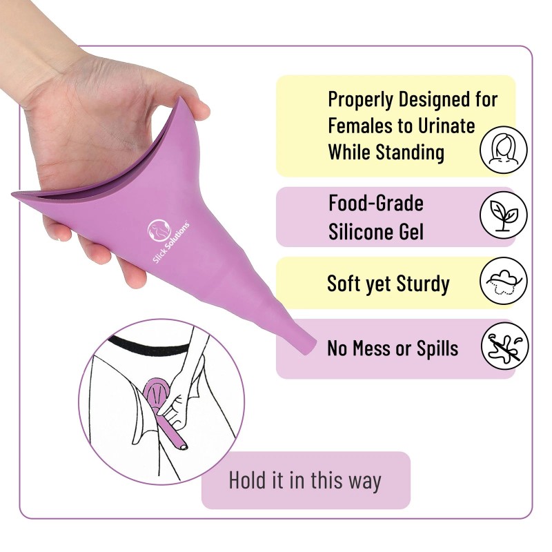 Slick Female Urination Device - Purple, Portable, Easy-to-Use Urinal Funnel f...