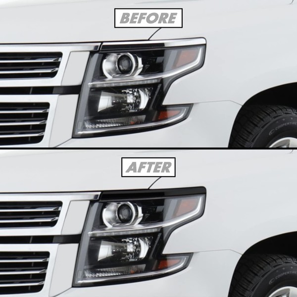 SlickMod Chrome Delete Blackout Vinyl Overlay for 2015-2020 Chevy Tahoe Headlight Bezel Trim (Gloss Black)