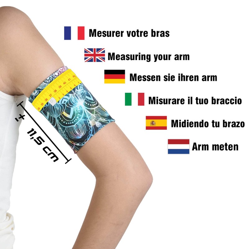- Measure your arm where the slide band is to be worn to protect or cover the pod or sensor. Make sure the tape measure fits well, but you don't need to tighten it tightly. No need to hold the pod or sensor during measurement.