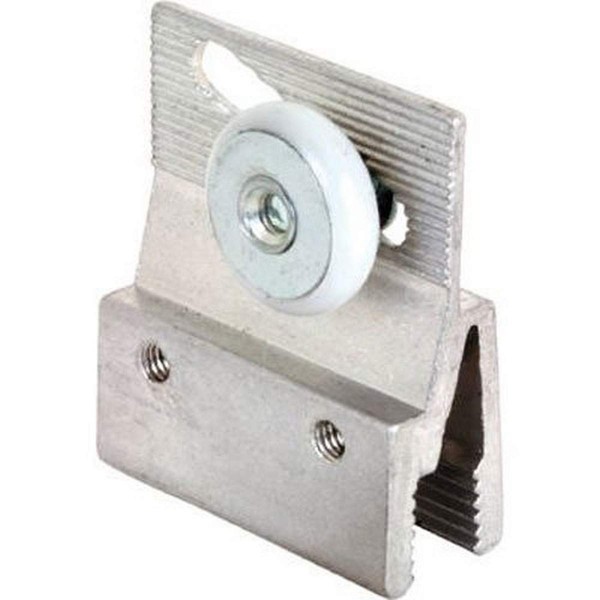 This extruded aluminum bracket houses a 3/4 In. diameter nylon roller. Used on solid glass panels with no frame.