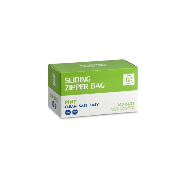Slider Pint Food Storage Bags- 100 Count, BPA-Free, 2 Mils Thick, Expandable Bottom, Quick Locking-Zip, Leak Proof For Storage & Organization