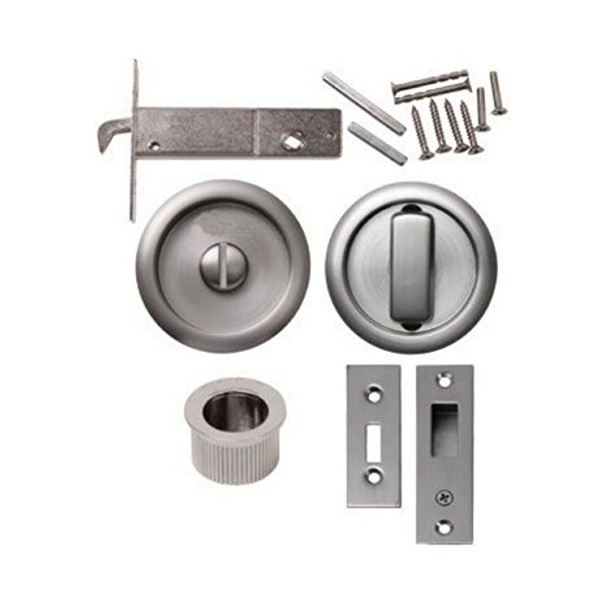 Sliding Bathroom Door Lock Toilet Privacy Round Coin Release Satin Stainless