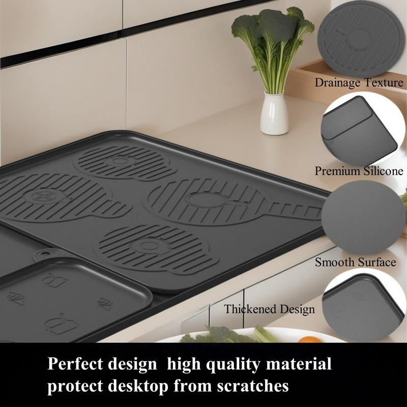 - ✅ 3-IN-1 FUNCTIONALITY - Combines bar mat, drying rack & drip tray: Drain grooves channel melted ice cream & liquid, detachable drying mat accelerates air circulation for quick cleanup.