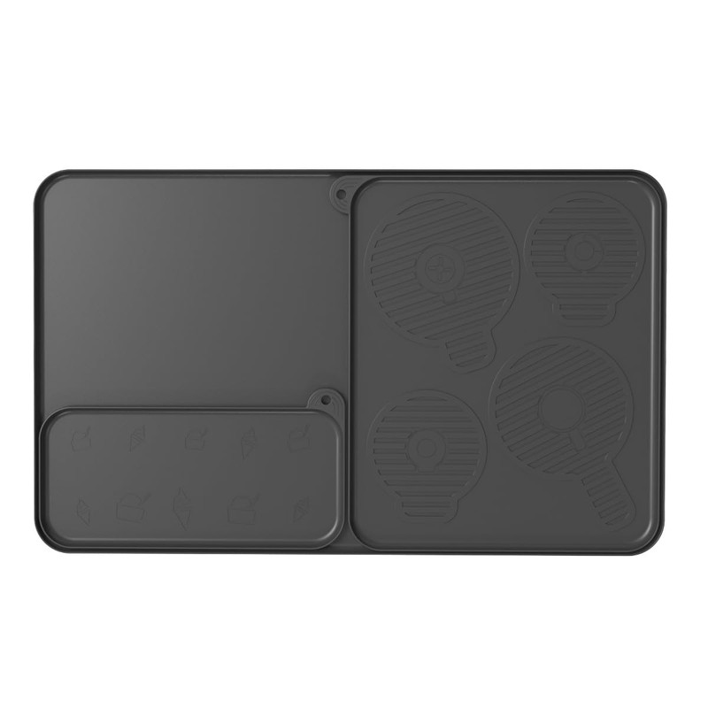 - 【Large Size & Smart Storage】:At 17.7" x 10.2", this sliding pad perfectly Compatible with Ninja NC701’s wide base. Includes a free silicone strap—roll up the mat tightly or hang it on hooks for compact storage, ideal for large kitchen appliances!