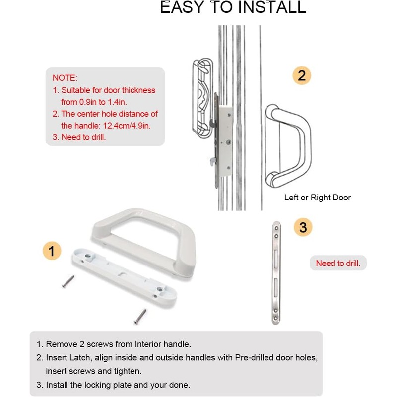 - High Quality Patio Door HandleIt is NOT A UNIVERSAL HANDLE, please check carefully whether it is suitable for your door before buying it, so as not to cause you inconvenience! ALLYWASAI sliding patio door handle set are made of high-quality zinc and aluminum alloy, smooth surface, and comfortable hand feeling. Our patio door handle lock set is the most economical and useful you can find.