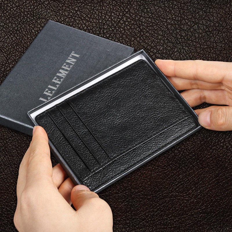 Slim Front Pocket Minimalist Leather Wallet | RFID Blocking Wallet for Men and Women | Mens and Womens Wallet with Gift Box | Brown Minimalist Leather Wallet (Black)