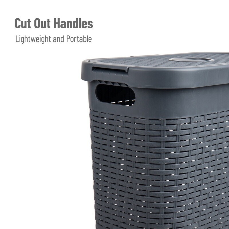 Space-saving design: The slim and sleek 40-liter (15kg/33lb) laundry hamper fits into small spaces such as closets, laundry rooms, or bedrooms Easy portability: The cut-out handles make it convenient and comfortable to transport the clothes basket from one room to another Keep it contained: The lid keeps your laundry hidden and private, ensuring that your bedroom or bathroom stays neat and clean. The hinged lid design prevents it from getting lost Ventilated construction: The lightweight premium wicker design allows for airflow, keeping your clothes and towels fresh Dimensions: Measuring 10. 4 inches long x 18 inches wide x 23. 5 inches tall (18. 16 x 37. 46 x 59. 69 centimeters) at the top, this tapered laundry hamper provides ample space to hold all of your clothes between washing days Adult
