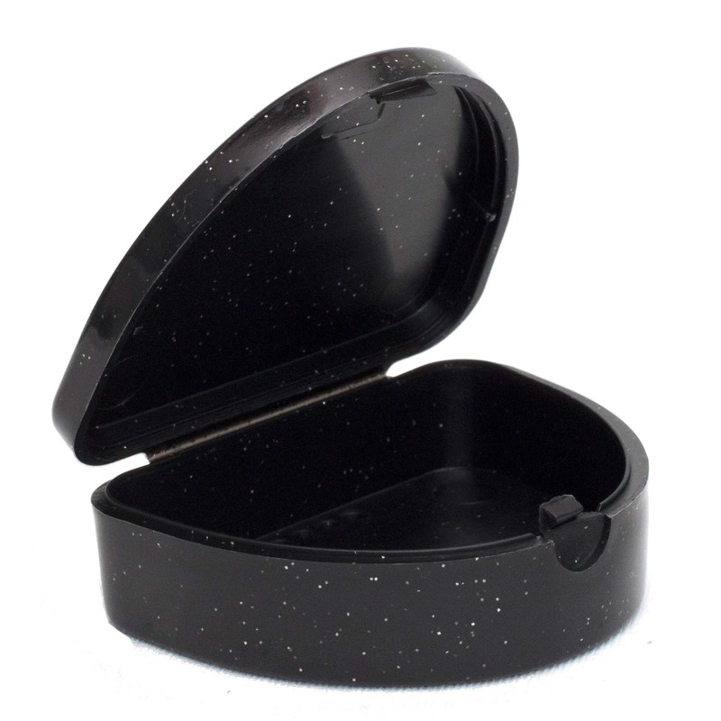Slim Orthodontic Dental Case - Colour & Glitter Choices for Retainers, Bleaching Trays, Dentures & More (Glitter Black)