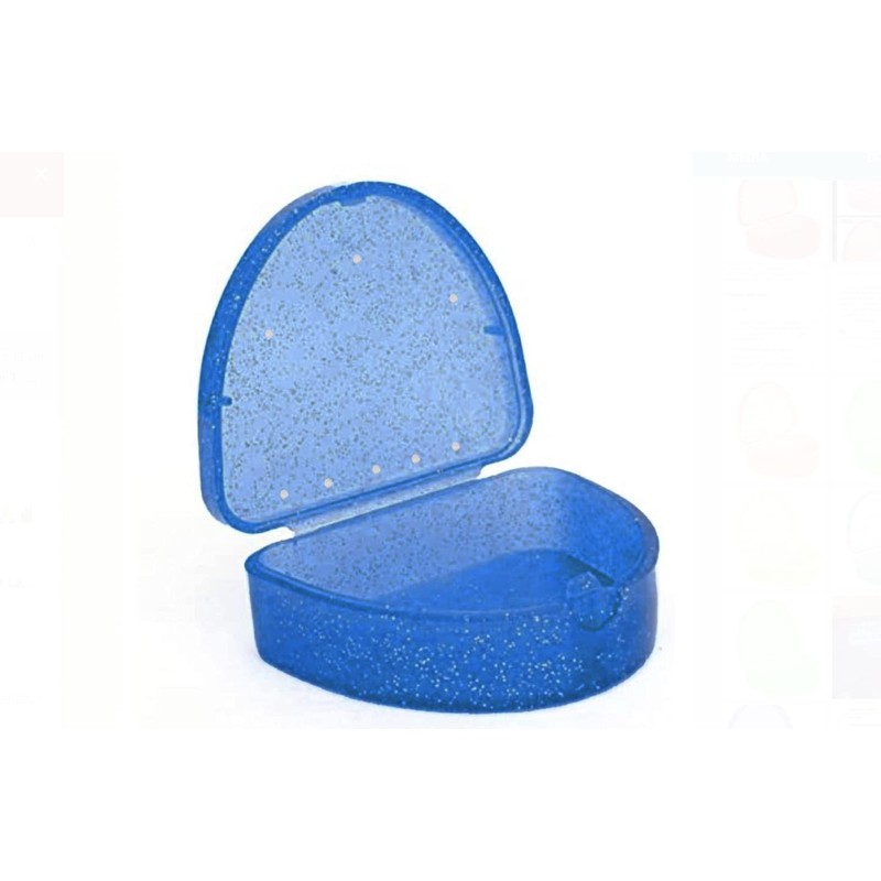 Slim Orthodontic Dental Case - Colour & Glitter Choices for Retainers, Bleaching Trays, Dentures & More (Glitter Dark Blue)