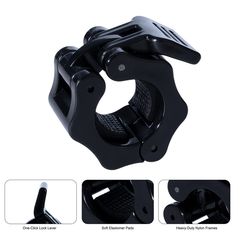 Made of durable steel and designed with plastic handles. Get more secure weight lifting sessions. Release with ease on and off 1" barbells while ensuring plates don’t move or slide off so you can focus on your training even during overhead presses and heavy squats.
