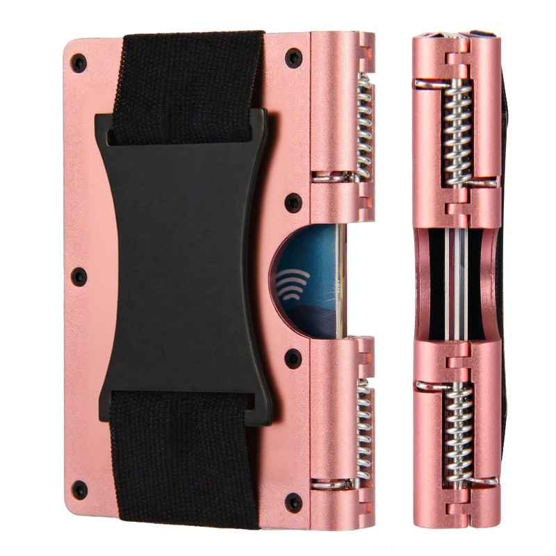 Slim RFID Blocking Metal Wallet - Aluminum Card Holder Wallet with Money Clip/Cash Strap | Scratch Resistant Minimalist Wallet for Men & Women | Holds 1-12 Cards (Cash Strap/Pink)