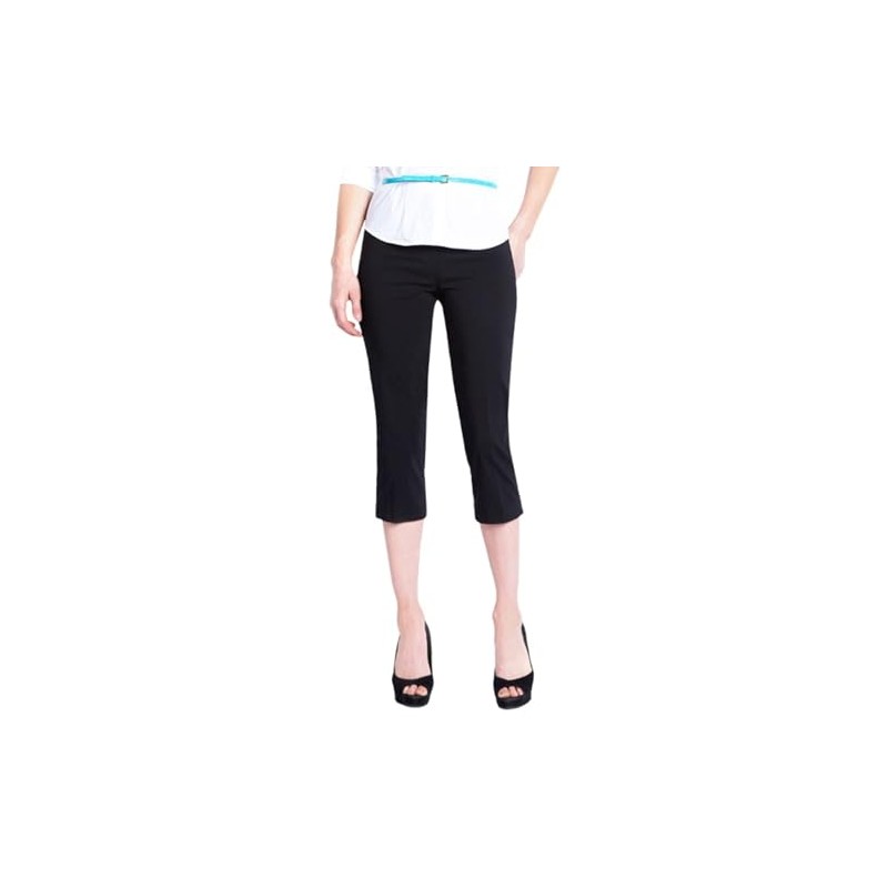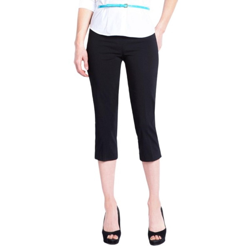 SLIM-SATION Women's Wide Band Pull on Straight Leg Capri with Tummy Control, 12, Black