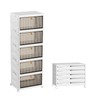 - 【Gap Storage Cabinet】This storage cabinet measures 11" D x 15.4" W x 38.6" H, offering a 28-gallon storage capacity. It features five separate, stackable drawers, allowing you to adjust the tiers to suit your needs. The enclosed design keeps your items clean and well-protected.