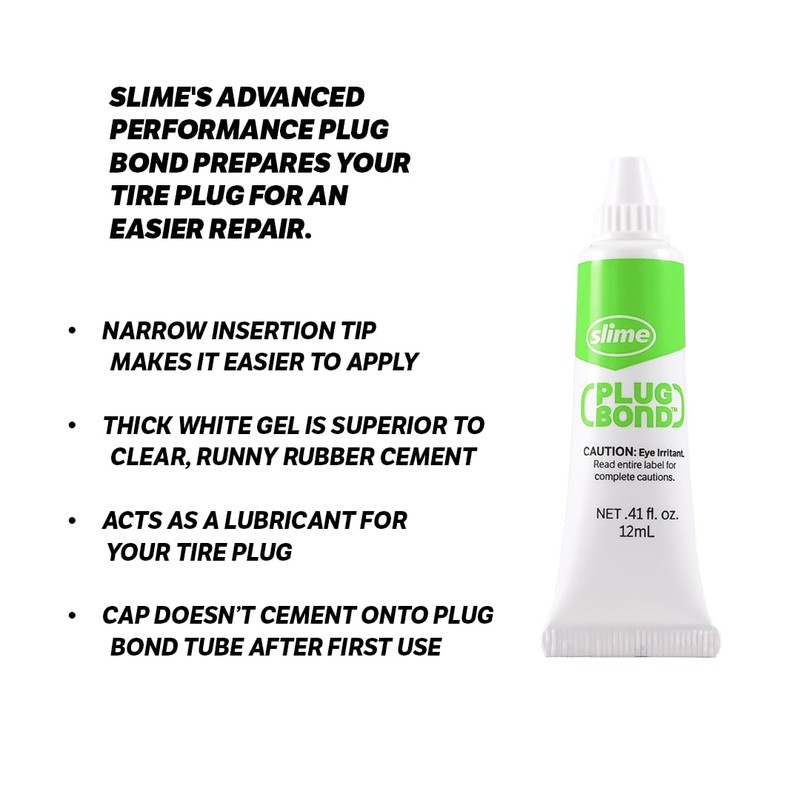• Slime's advanced performance Plug Bond prepares your tire plug for an easier repair.