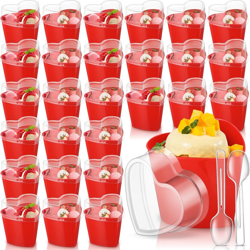 - Widely Applicable: these heart shaped dessert cups with lids and spoons are suitable for various occasions, such as weddings, birthday parties, baby showers, Valentine's Day, etc. They are also suitable for showcasing delicious desserts, pudding, ice cream, tiramisu, cakes, ice cream, jelly, yogurt, etc