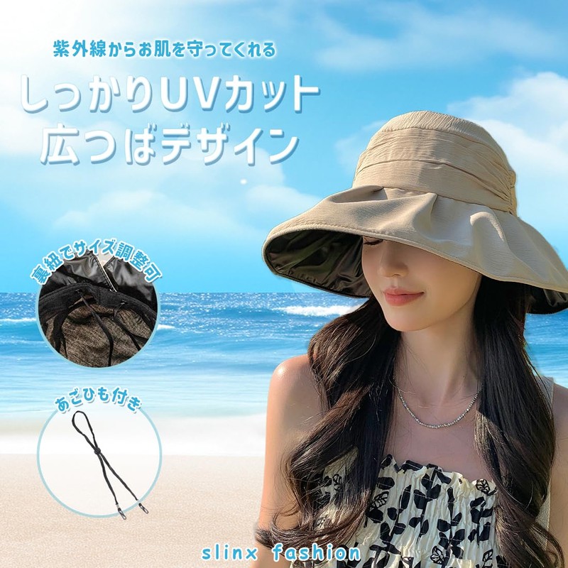 SLINX FXM03 UV Protection Hat, Women's Hat, UV Protection, UV Care, Sunshade, Sun Protection, Wide Brim, Small Face Effect, Foldable, Size Adjustable, Includes Chin Strap, Back Ribbon, Stylish, Cute