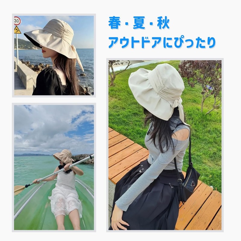 - UV Protection Heatstroke Prevention: This women's hat has a wide brim that protects your face and the back of your neck and ears from sunburn. Effective UV protection and helps prevent heatstroke. By applying a UV protection coating on the reverse side, this hat is an indispensable item for those seasons with strong sunlight. The wide brim effectively prevents UV injuries and protects them from sunlight. The chin strap is a drawstring stopper that can be adjusted at the neck. No need to worry about your hat flying out during windy outdoor activities. The chin strap can be removed when not in use. The fit is good