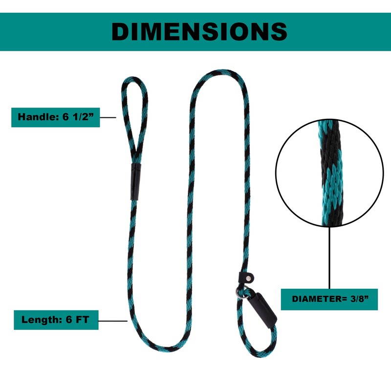 Slip Lead Dog Leash Made in The USA | All in One No Pull Dog Leash and Collar with Adjustable Loop | 3/8” Thick for Small Dogs 6 FT (Teal Green)