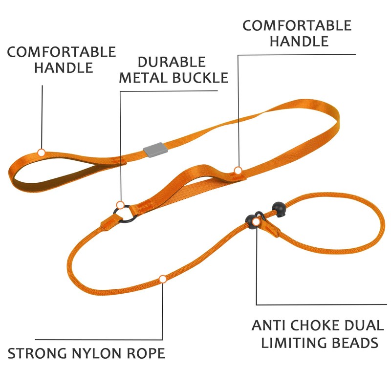 Slip Lead for Dogs, Dog Slip Collar Anti-Choking, Double Handle Dog Lead with Soft Foam Padded & Climbing-Grade Nylon Rope, Training Leash (Orange 1.7m)