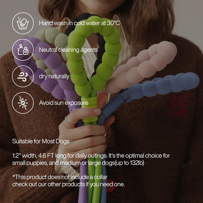 - 【Fashion color scheme】 Colorful macaron color and cute soft marshmallow shaped handle make you and your dog the focus of the park. The two wide and long rope segments can be changed into 3 ways of pulling, hand/crossbody/waist pull can be switched at will.