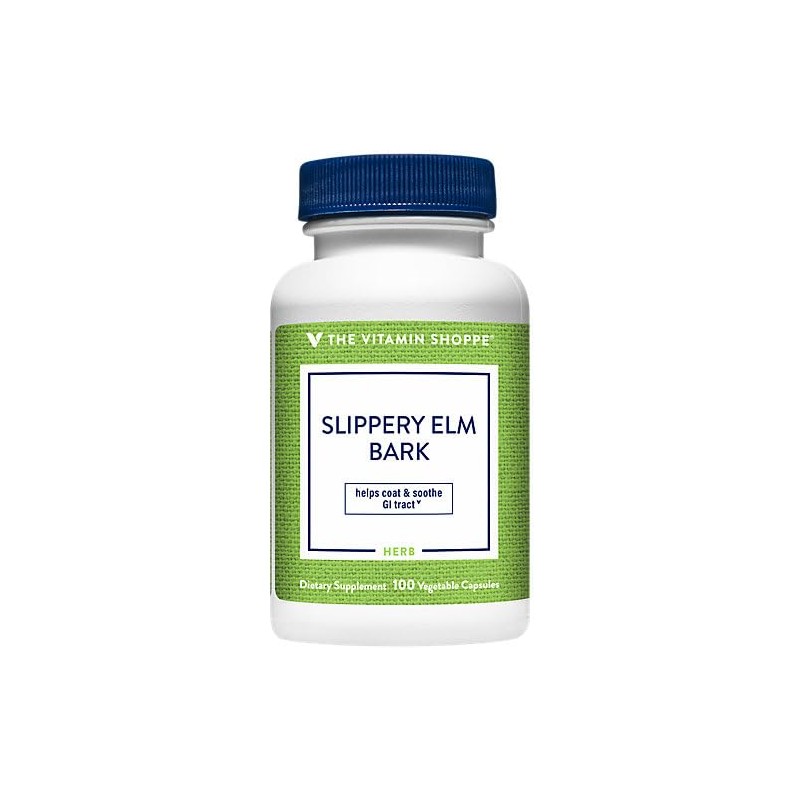 Helps coat and soothe the GI tract Free of gluten, dairy, soy, and nuts Slippery elm, or Ulmus rubra, is native to eastern and central North America. Due to its ability to stimulate mucous and saliva, slippery elmaTMs inner bark is traditionally used to alleviate gastrointestinal upset and a dry or sore throat. This formula from The Vitamin ShoppeA brand helps coat and soothe the GI tract with 1,600mg of slippery elm bark per serving.