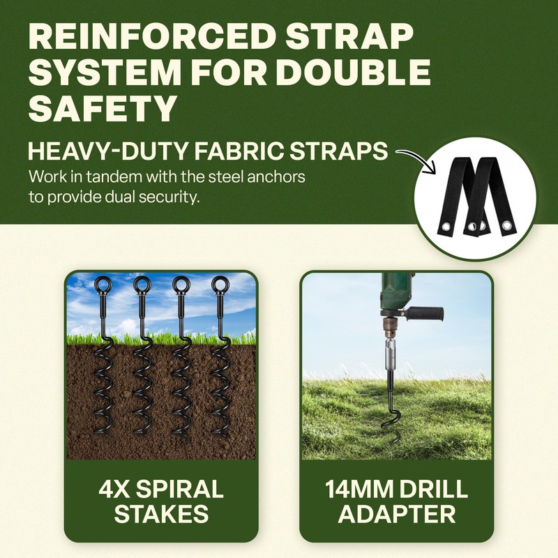 - Includes Premium Extra Straps: Along with 4 trampoline ground anchors, we also provide 4 additional heavy-duty fabric straps for enhanced security.