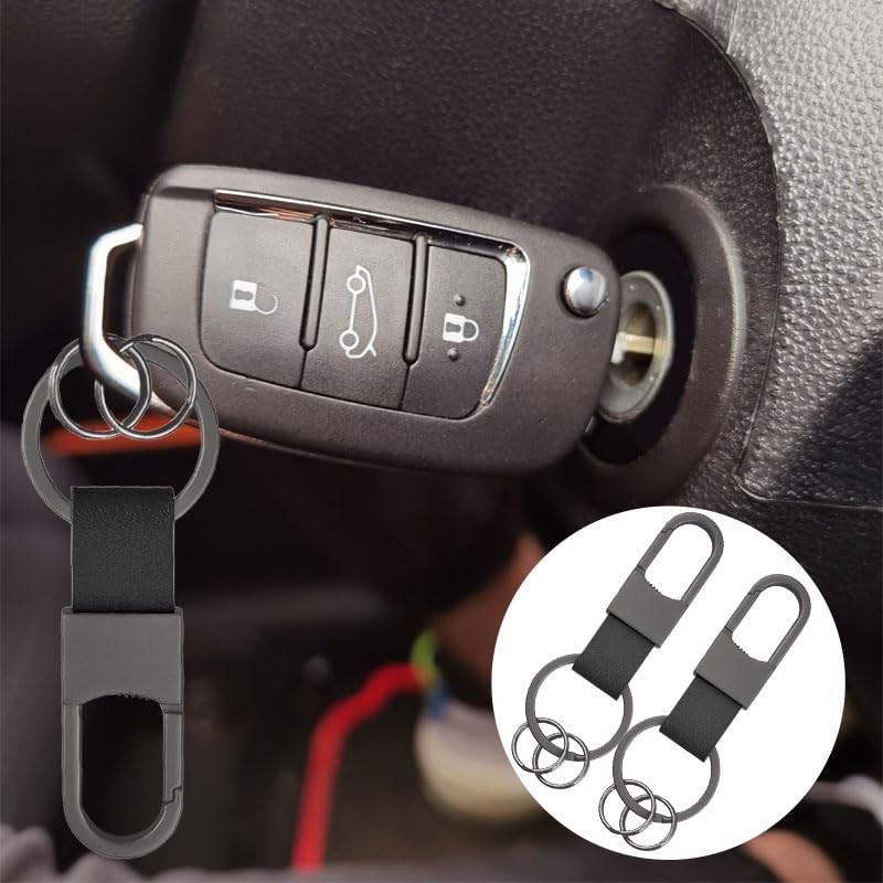 SLIVERBA Pack of 2 leather key rings, leather car key rings for men, women, for car, motorcycle, bicycle and home lanyard (black), black, Unit size