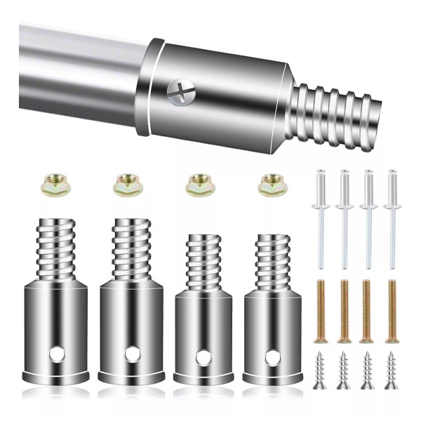 Lista del Paquete: Recibirás 4 Juegos de Poste de extensión de Rodillo de Pinta de Repuesto Con 4 piezas de Repuesto de Punta Roscada y 8 piezas (Tornillos Pequeños). Puede Satisfacer Tus Necesidades Diarias de Uso y Reemplazo.; Detalla Del Tamamo: Este Mango de Escoba Tiene un DiáMetro Interior de 0.8/1 (0.799 in/0.984 in) y es adecuado para varillas de 0.8/1 de diámetro. ComprueBa Las Dimensiones Antes de comprar para Asegurarte de Elegir El Reemplazo Correcto del Cabezal Roscado.; Material Fuerte y Duradero: El Kit de Reparación de Cabezal Roscado Está Hecho de Aleació de Aluminio, Que no Se oxida ni Daaña Fácilmento. La Aleació de Aluminio Tiene Baja Densidad, Alta Resistencia, Cerca o Superior Al Acero de Calidad, y Excelente Resistencia a la Corrosió.; Fácil de Instalar: El Kit de Reparacia de Cabezal Roscado es rápido y fácil de Instalar y no requirido Herramientas Especiales. ES Realmento fácil Simplemento Insertar La Varilla en El Reemplazo de la Cabeza Roscada, Clavarla en Su Lugar y Apectarla.; AMPLIA GAMA DE APLICACIONES: LOS Accesorios de Varillas Roscadas hijo Ampliamento utilizados para una una variedad de Cabezales de Cepillo (Trapeadores, Barras de Gancho de Barco, Barras de Fregadero, Barras de Pintas, Colectores de Polvo, Telessescópicos, Cepillos de Cubie, etc.) . Es un hilo estándar que se pude adaptar un Cabezales de Fregona o Cabezales de depurador comprados. Nombre: Accesorios Universales del Tornillo de la F