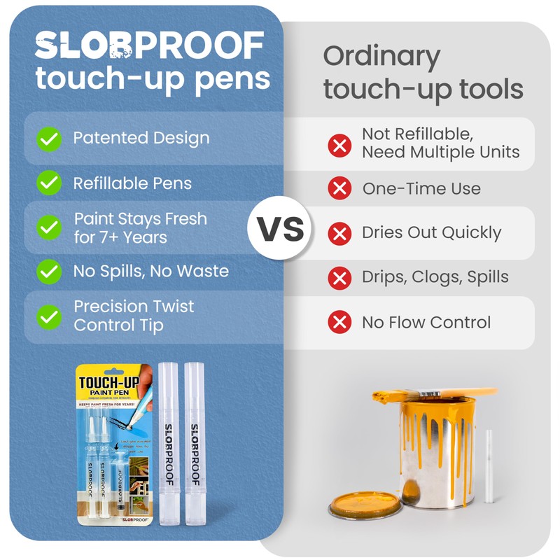 Slobproof Refillable Touch-Up Paint Pen, Mess-Free, Reusable Wall Paint Repair Tool, Precise Application, DIY Home Improvement, Furniture, Arts and Crafts, Patented Design, Easy Storage, Pack of 2