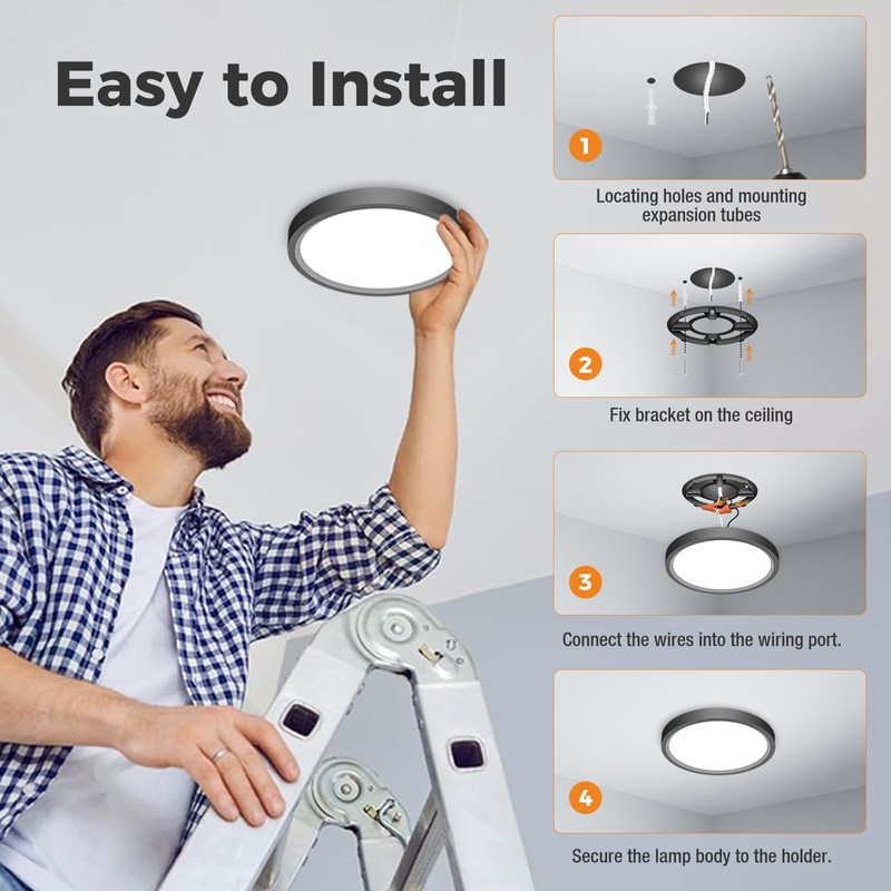 - 【Easy Installation】: Since the base is designed to fit 99% of junction boxes, the installation is very simple and can be done without the help of an electrician. The high quality PC housing ensures better light transmission and impact resistance, making bedroom ceiling light safe and durable. A smart choice for anyone looking for efficient, economical lighting