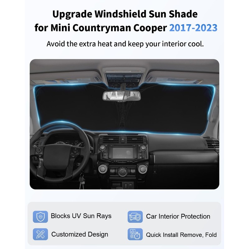 - [VEHICLE SPECIFIC] SLOGENTO Windshield Shade custom fitfor Mini Countryman Cooper F60 SUV, Full covered your windshield,No Gap,100% Perfect fit.