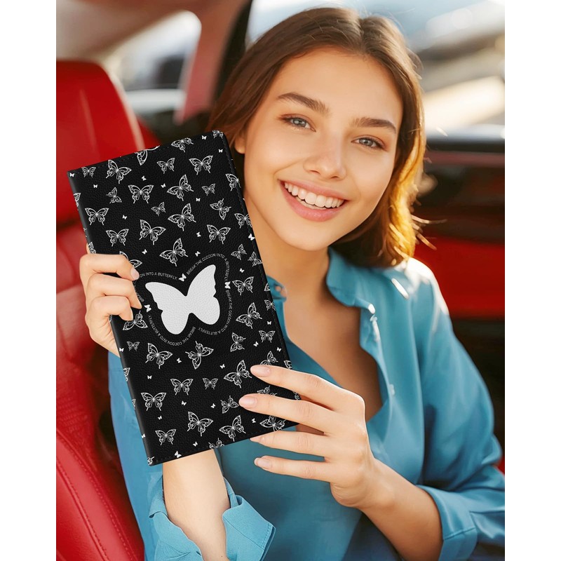 Slohif Car Registration and Insurance Card Holder - Butterfly Vehicle Glove Box Organizer Women with Magnetic Shut Leather Automobile License Holders Coasters Auto Accessories Case for Document