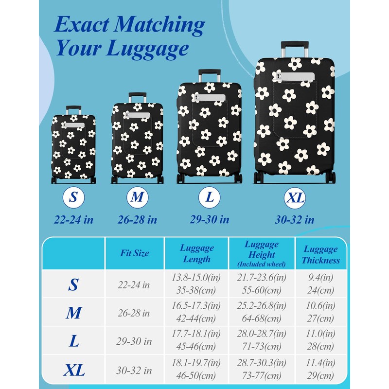 - Superior Elastic Fabric: This elastic polyester fiber fabric is easy to put on and take off,can be used multiple times without deformation,and can tightly adhere to your luggage like gloves,suitable for 22-32 inches