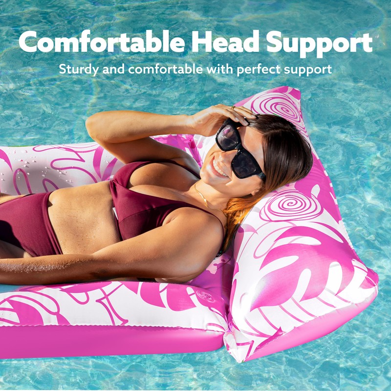 SLOOSH Inflatable Pool Floats Adults - Large Pool Float Tanning Raft with Headrest, Keep Cool Above Water Swimming Pool Floaties Beach Lake Party Supplies (Pink)