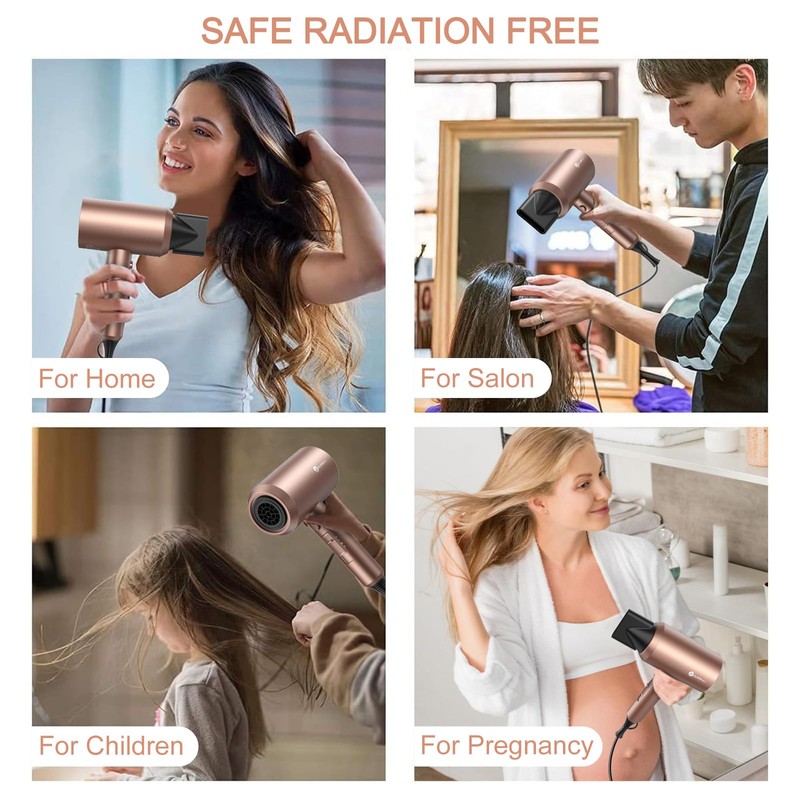 slopehill Professional Ionic Hair Dryer, Powerful 1800W Fast Drying Low Noise Blow Dryer with 2 Concentrator Nozzle 1 Diffuser Attachments for Home Salon Travel (Mocha Mousse)