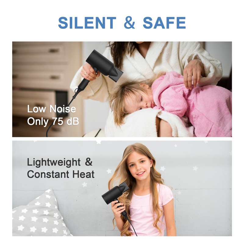 - 【Powerful Motor for Faster Drying】The professional hair dryer delivers strong wind for fast drying even thick wavy hair in less time, because of the High-speed motor, up to 21,000 rpm. Compact design will be more lightweight & portable Lightweight & Portable.