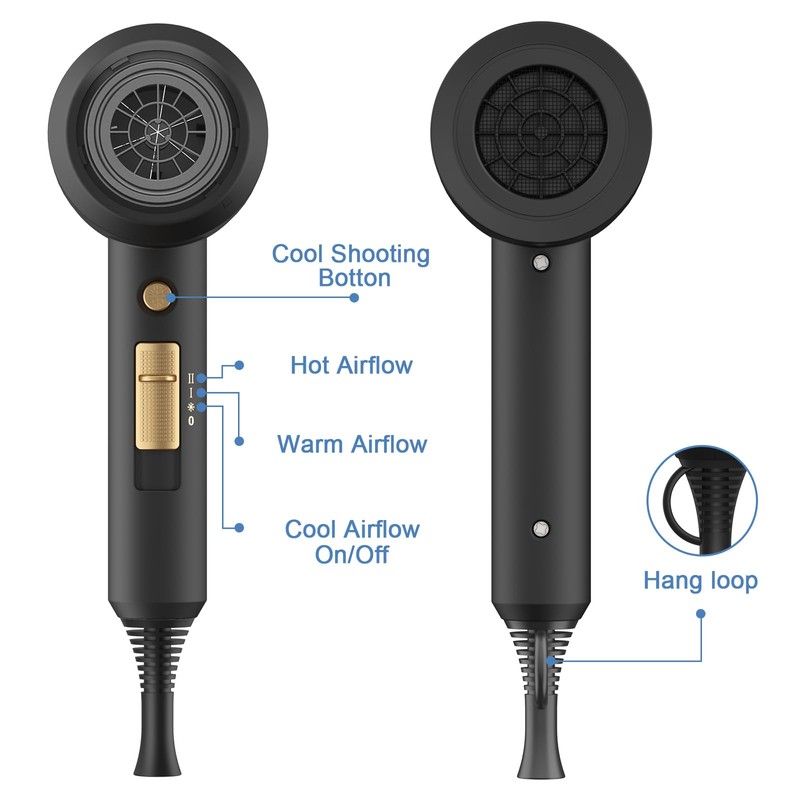 - 【Deeply Protect Hair from Damaged】Hair care and low-radiation. The hair is protected at a constant temperature, evenly dried, no damaged. And Air outlet electromagnetic low radiation.