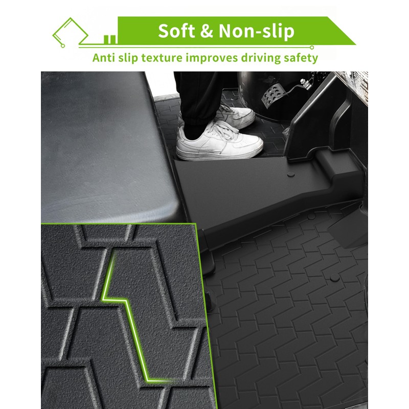 - The front and rear mud liners provide excellent anti-slip protection, and the strong grip ensures that your feet stay firmly in place as you drive. The mats are moderately firm and the textured surface is designed to make you feel relaxed and increase your driving comfort.