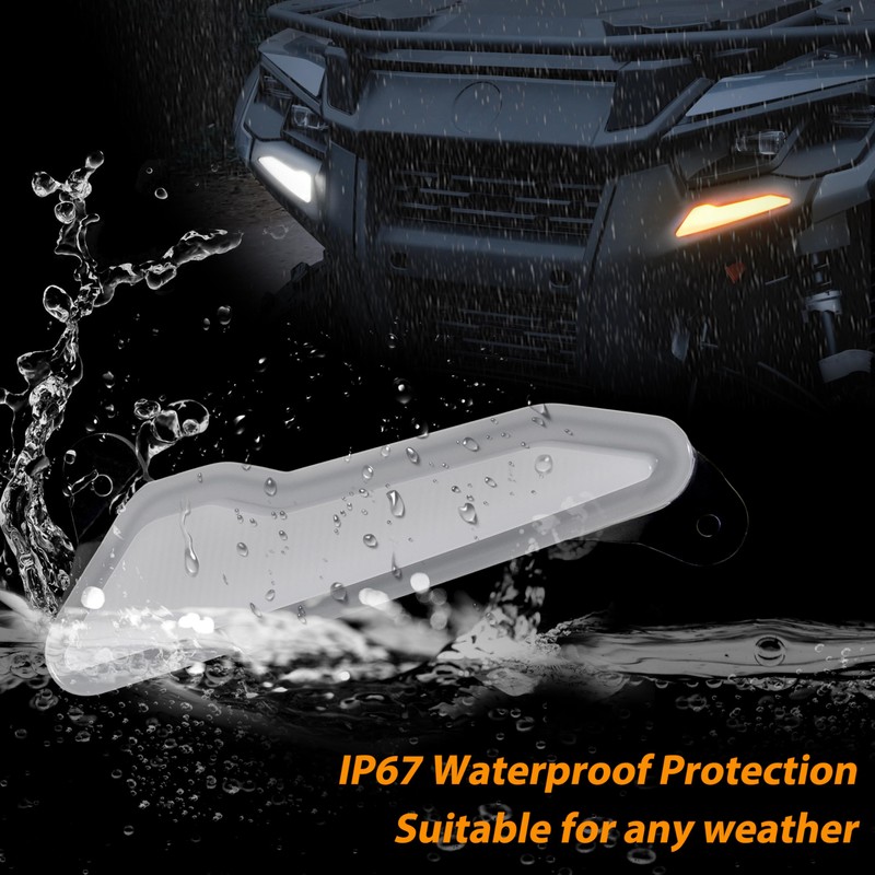 - LED front facia lights for Outlander are used quality materials. LED beads for light sources, PC lencs and ABS plastic as housing, IP67 waterproof seamlessly integrate, makes it no flickering or failure; Long service time