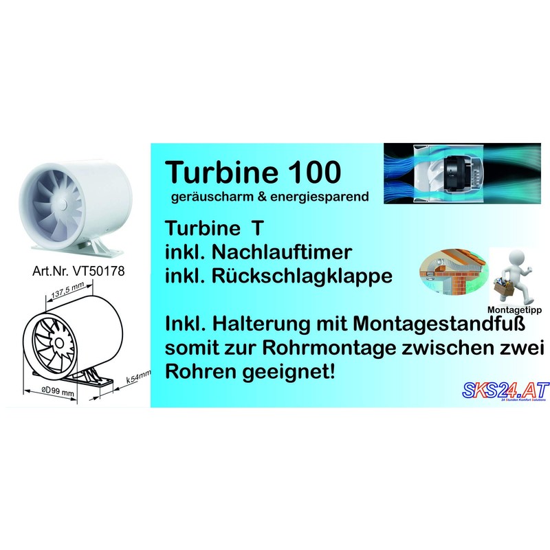 Slot-in pipe fan Soundless Turbine Duo - quiet as the wind, strong as a turbine.