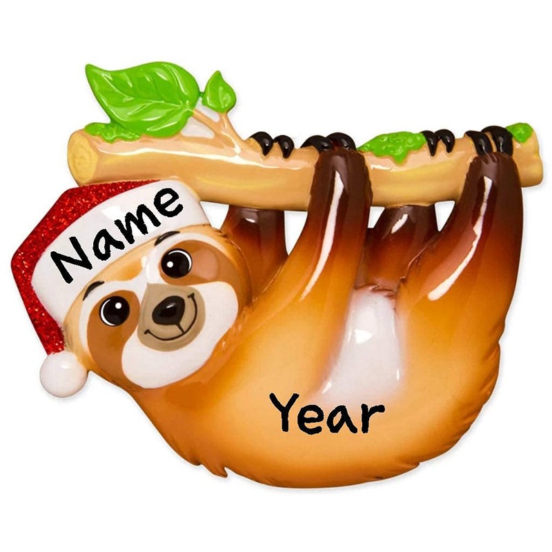 Sloth Character Personalized Christmas Tree Ornament 2025 | Custom Writing Sloth Character Ornament Gift | Happy Figure Hat Cuddle-kins Branch
