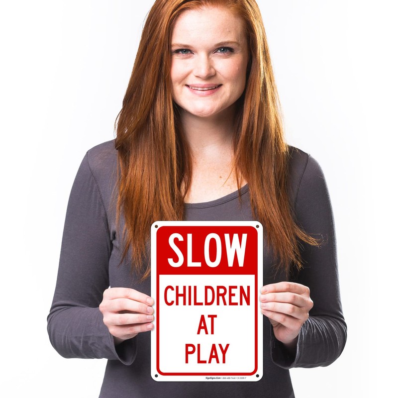 Slow Children at Play Red Sign, Traffic Sign, 10x7 Inches, Rust Free .040 Aluminum, Fade Resistant, Made in USA