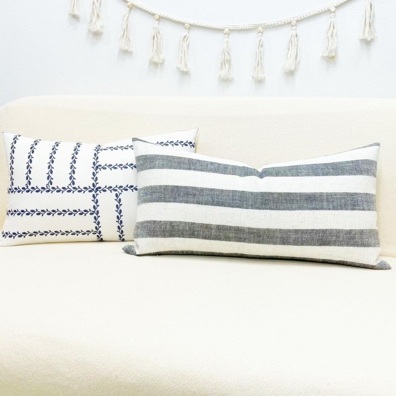 - This cover both sides same design; striped fabric is easy to mix and match with other decorative pillows