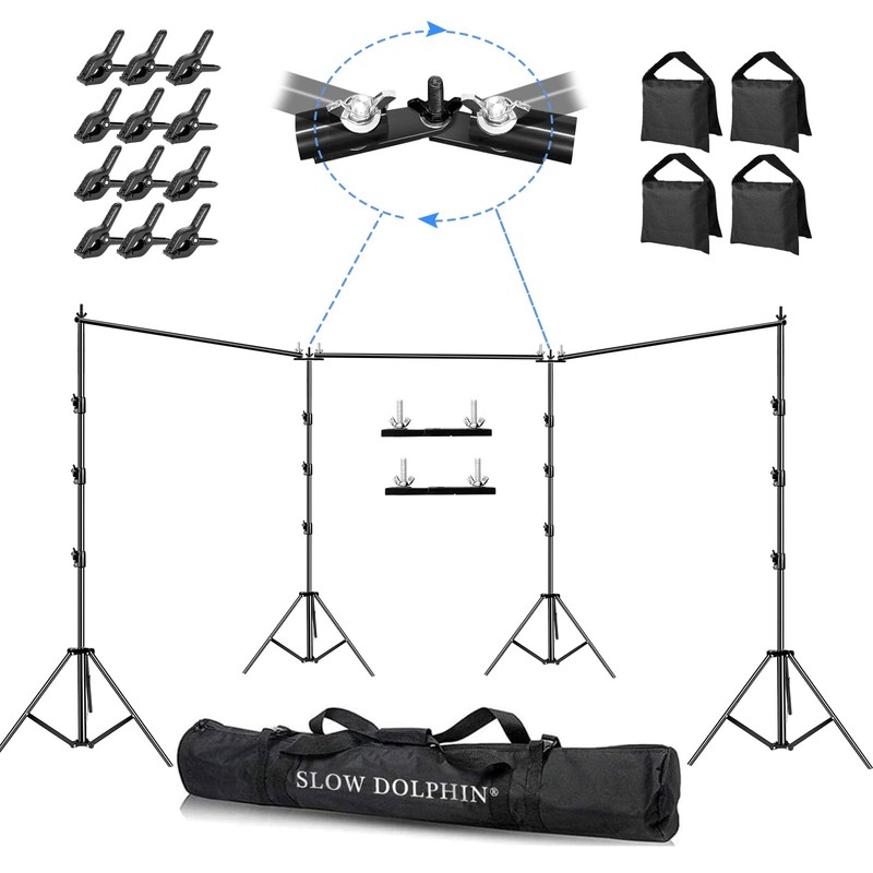 SLOW DOLPHIN Photo Video Studio 30ft (Wide) x 10ft (Tall), Degree Crossbar Rotatable, Angle Adjustable Triple Crossbar Extender Mount, Photography Background Support System, Sand Bags,Clamps