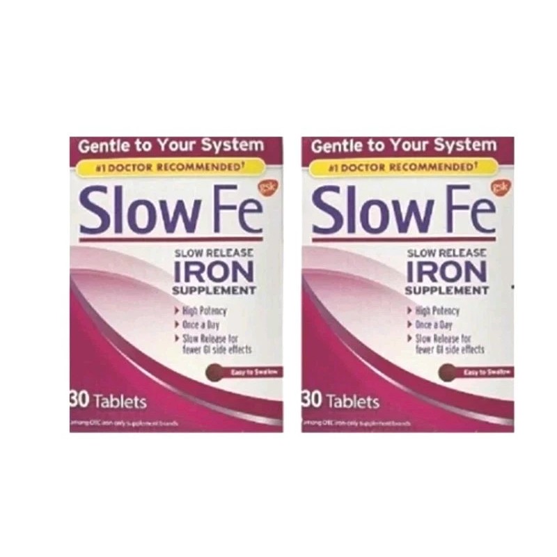 Slow Fe Iron Supplement Slow Release 45mg 30ct EACH 2 PACK Exp 8/27+