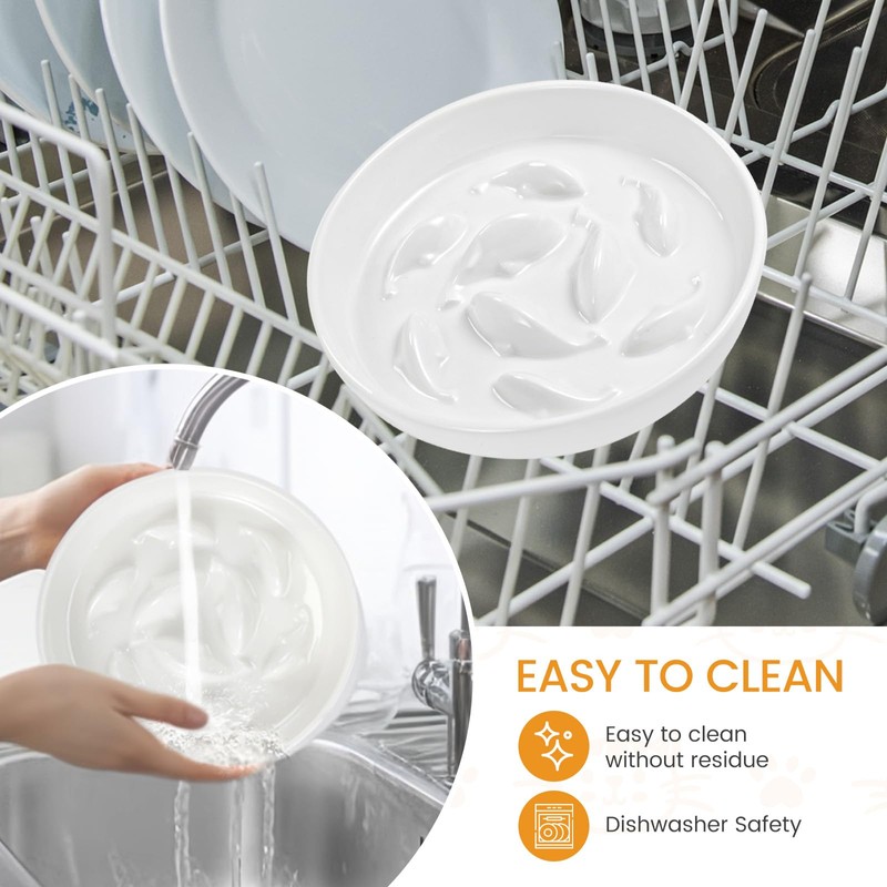 - Food-Grade Material: Made from food-grade ceramic and subjected to high-temperature firing, the slow cat feeder bowl is free from harmful substances. It is microwave and dishwasher safe, making it convenient for daily use. The smooth surface design prevents scratches on your pet's mouth and tongue, allowing them to enjoy their meals without any health concerns