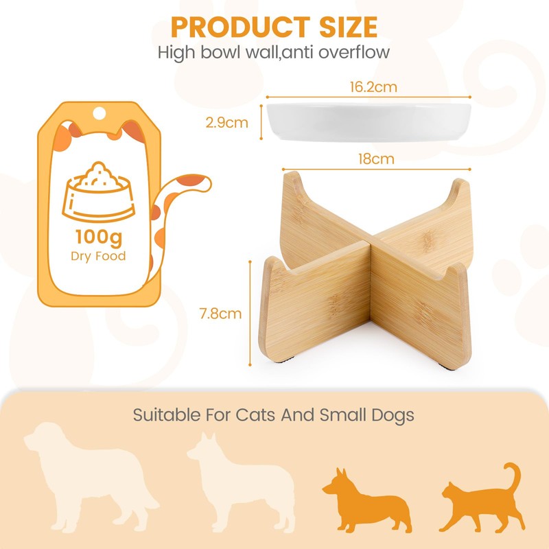 Elevated Wooden Stand for Neck Support and Aesthetic Appeal: The elevated wooden stand not only adds an elegant touch but also provides neck support for your cat, ensuring a comfortable feeding posture.